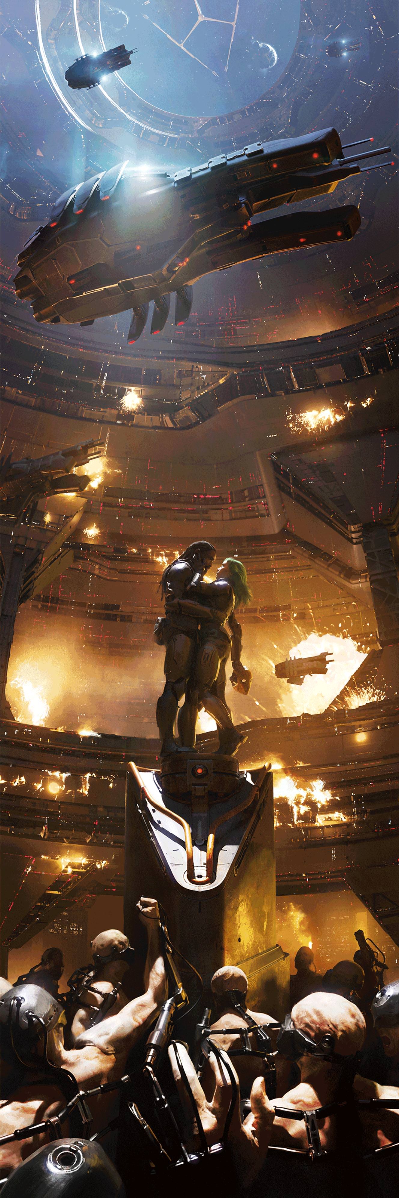 Heureusement, The amory Wars est également une BD écrite par Claudio Sanchez himself avec des artistes qui se relayent pour donner vie à l'univers. Les BD sont disponibles en lecture numérique sur Comixology. Dans The second stage turbine blade par exemple on suit les aventures de Coheed et Cambria, un couple marié contaminé avec un virus mortel et dont les enfants portent apparemment une version mutée de ce virus, encore plus virulente. On demande à Coheed de tuer ses enfants pour le bien commun. J'en resterai là pour le pitch mais on va détailler l'univers quand même. Tout se passe dans un délire SF où 78 planètes sont gentiment rangées en forme de triangle et reliées par un rayon de lumière appelé le Keywork. Dans ce joyeux bordel il y a trois races principales : Les hommes, les mages et les Prise, des madames ailées que Dieu a chargé de surveiller les hommes. Oui bon c'est des anges quoi, mais avec un twist.