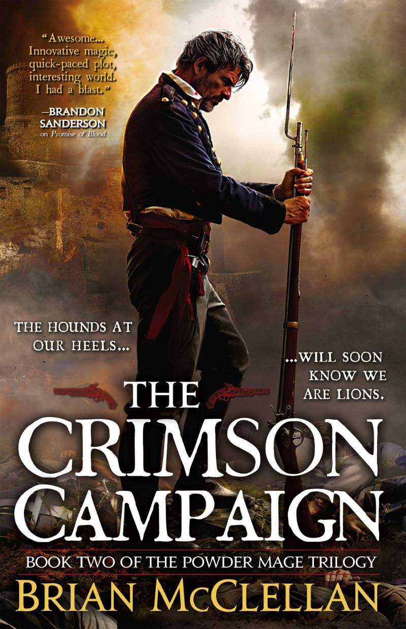 On n'a pas vraiment de nouveauté dans les perspectives de l'histoire, les points de vue sont les mêmes que sur La promesse du Sang. C'est pas un défaut puisque ces protagonistes sont excellents, rassurez-vous. Et Taniel ne passe pas tout le bouquin dans le coma puisqu'il se réveille assez vite pour retourner sur le front et constater que sans son père, la guerre a tourné à la grosse merde pour leur camp. Entre le front qui part en sucette et les bataillons de Tamas qui se font courser par quelques milliers de méchants, on voit bien vite que The crimson campaign va être bien plus "militaire" que The promise of blood. A part la trame d'Adamat, tout se déroule dans un contexte martial, et Brian McClellan montre une grande maîtrise sur ce terrain-là également. Les batailles à grande échelle, les tactiques, la tension, le désespoir, les retournements de situations, tout est brillamment dosé pour tenir le lecteur en haleine sans tomber dans des gouffres d'explications techniques d'historien pinailleur.